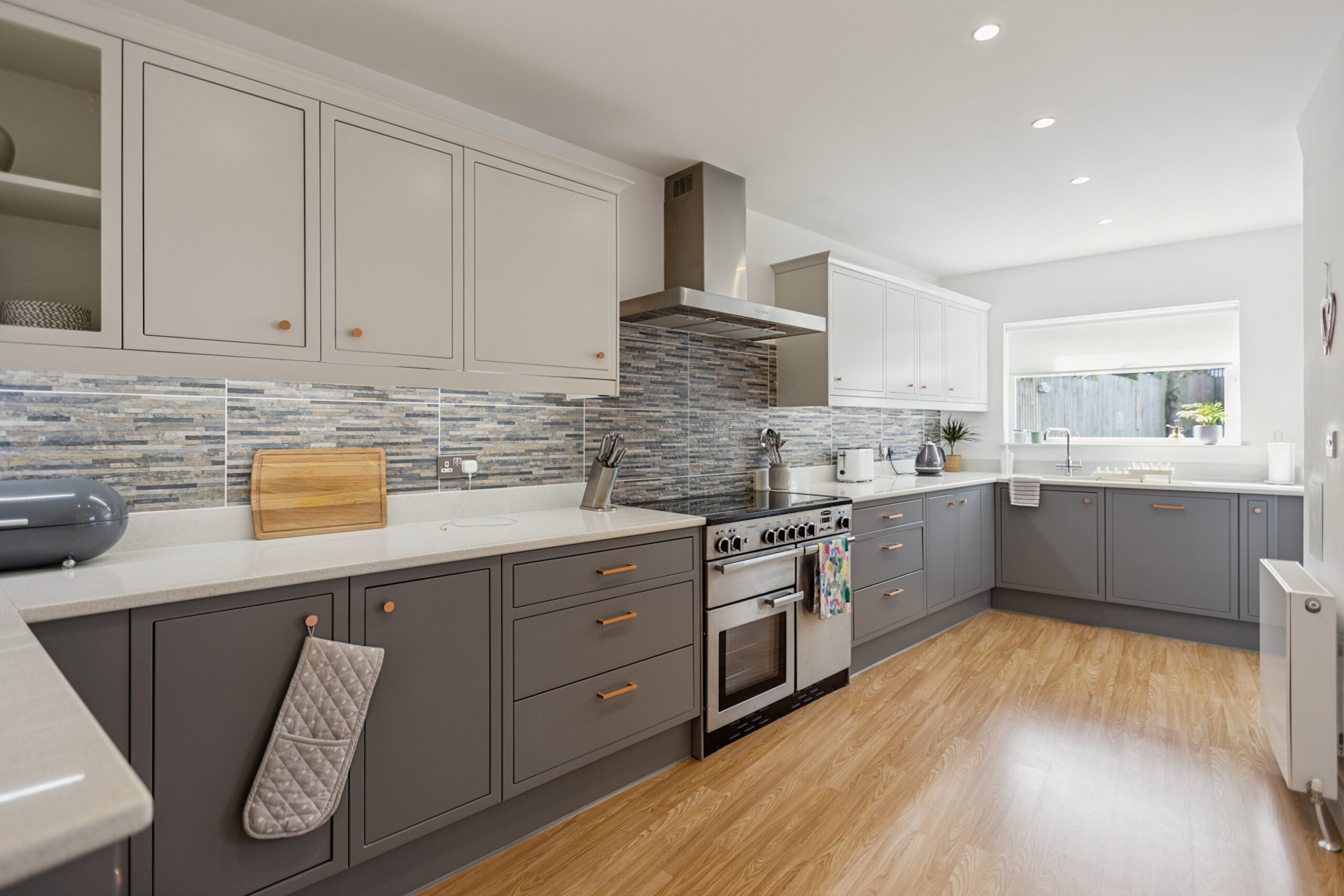 The exterior of the home is equally impressive, with a beautifully maintained front garden that adds to its kerb appeal. At the rear, a generous, child-friendly garden provides ample space for outdoor play and relaxation. A dedicated decked area offers the perfect setting for entertaining guests or unwinding in the fresh air. In addition, there is a substantial garden shed and an expansive private driveway which provides secure off-road parking, adding to the home’s practicality.
